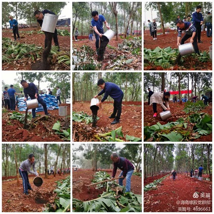 為將結(jié)對(duì)共建落到實(shí)處,第一黨支部結(jié)合當(dāng)前基地分公司正在開(kāi)展膠園冬春管理工作的實(shí)際,與豐收隊(duì)黨支部共同商定開(kāi)展“結(jié)對(duì)共建同進(jìn)步 義務(wù)獻(xiàn)肥促冬管”主題黨日活動(dòng)。在海墾集團(tuán)黨委委員、副總經(jīng)理,海南橡膠黨委書(shū)記、董事長(zhǎng)艾軼倫等黨員帶領(lǐng)下,支部黨員積極響應(yīng)號(hào)召,自發(fā)捐款3400元購(gòu)買(mǎi)羊糞生物有機(jī)肥,并施放到豐收隊(duì)的橡膠林段,為明年橡膠增產(chǎn)增收貢獻(xiàn)綿薄之力。