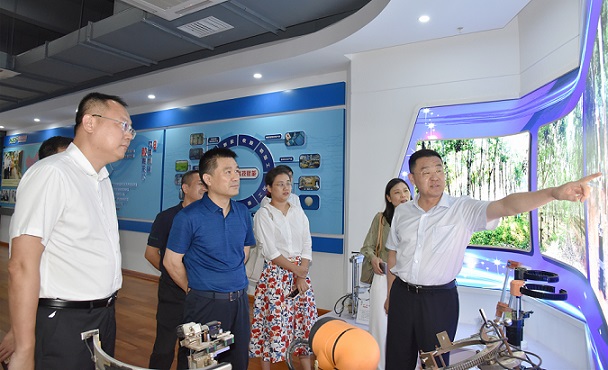在海膠(海南)智能科技公司,羅精暉一行參觀了科技展廳,全面了解海南橡膠全產業鏈科技創新情況。
